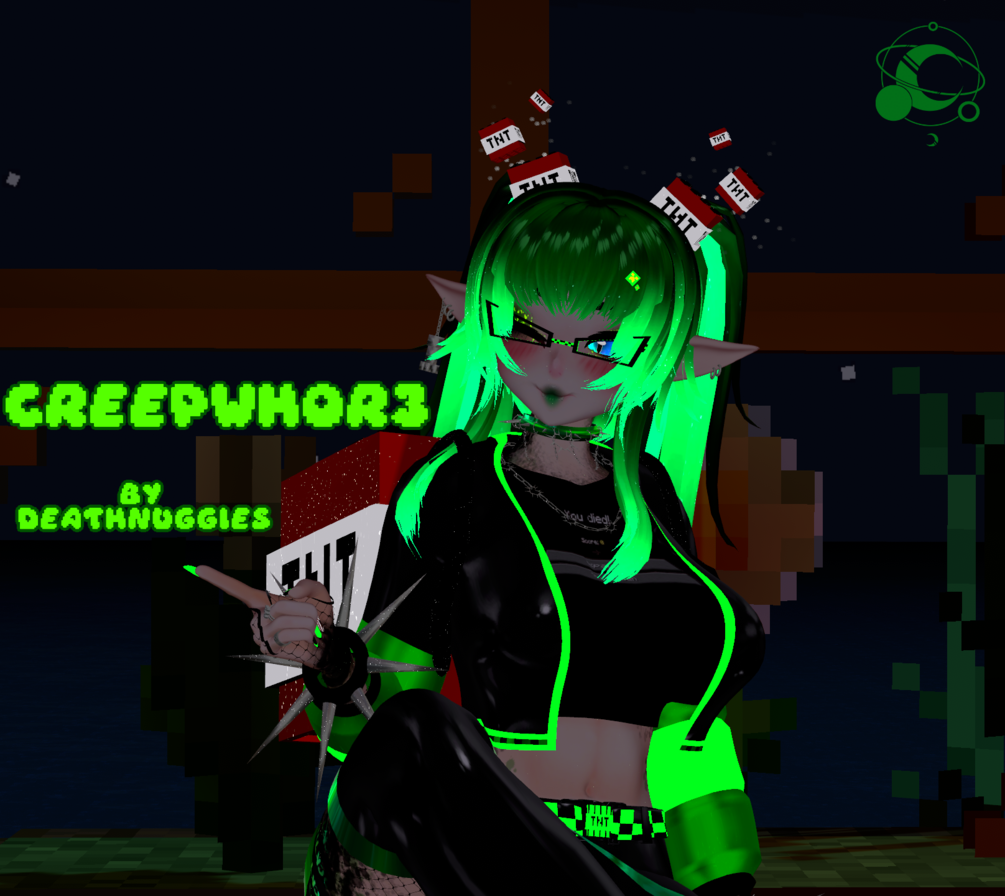Thigh High Fishnets + Arm Fishnets + TNT Backpack + Glasses + Hair Clips + TNT Berets+ Creeper Earring + Face Piercings + Rings + Melon Piercings + Skin Textures, Explosion + Beret Particles by Death Nuggies NOT FOR REUSE